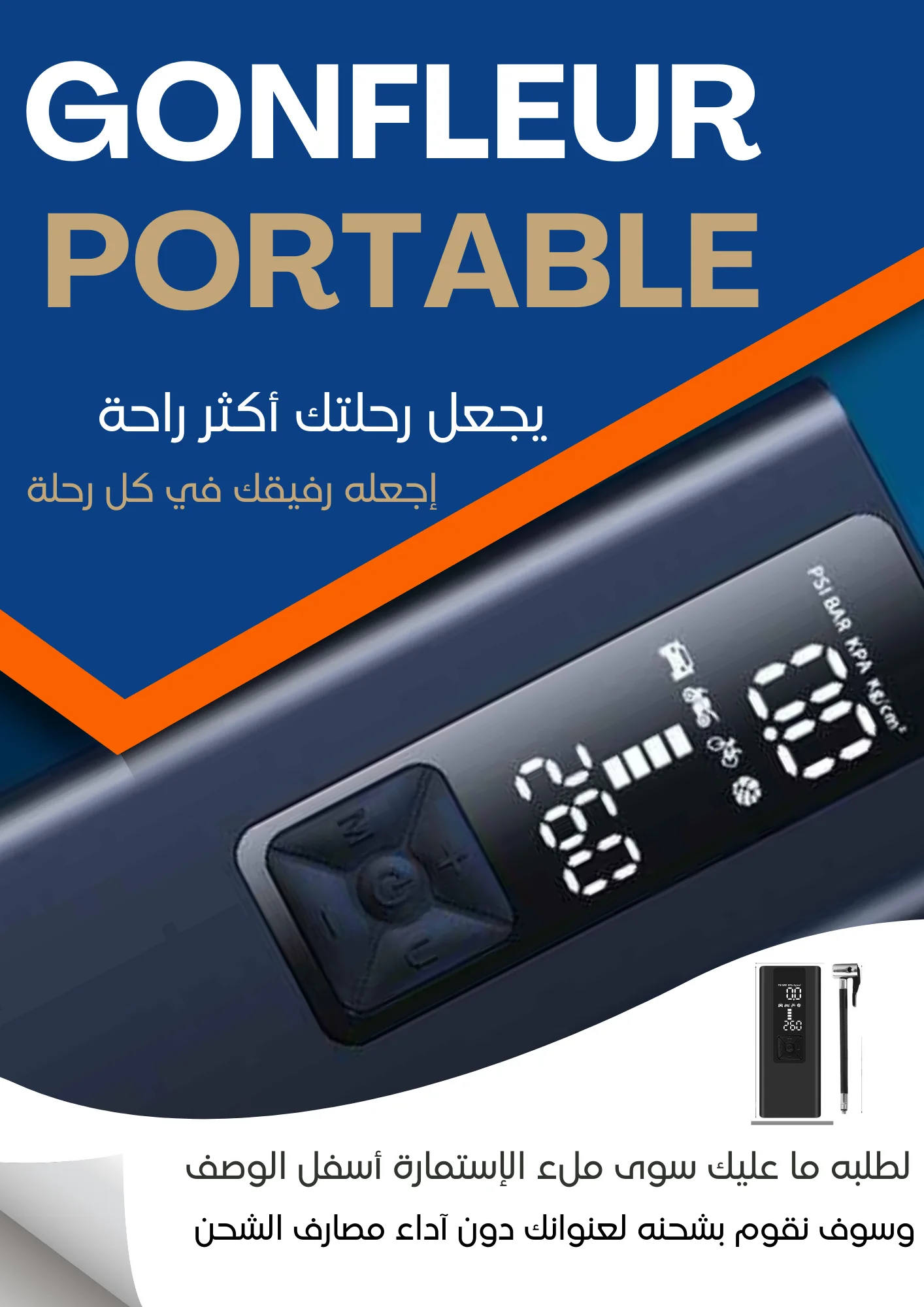 المضخة الهوائية الصغيرة تتميز بتصميم مدمج وخفيف الوزن، مما يجعلها سهلة الحمل والتخزين
